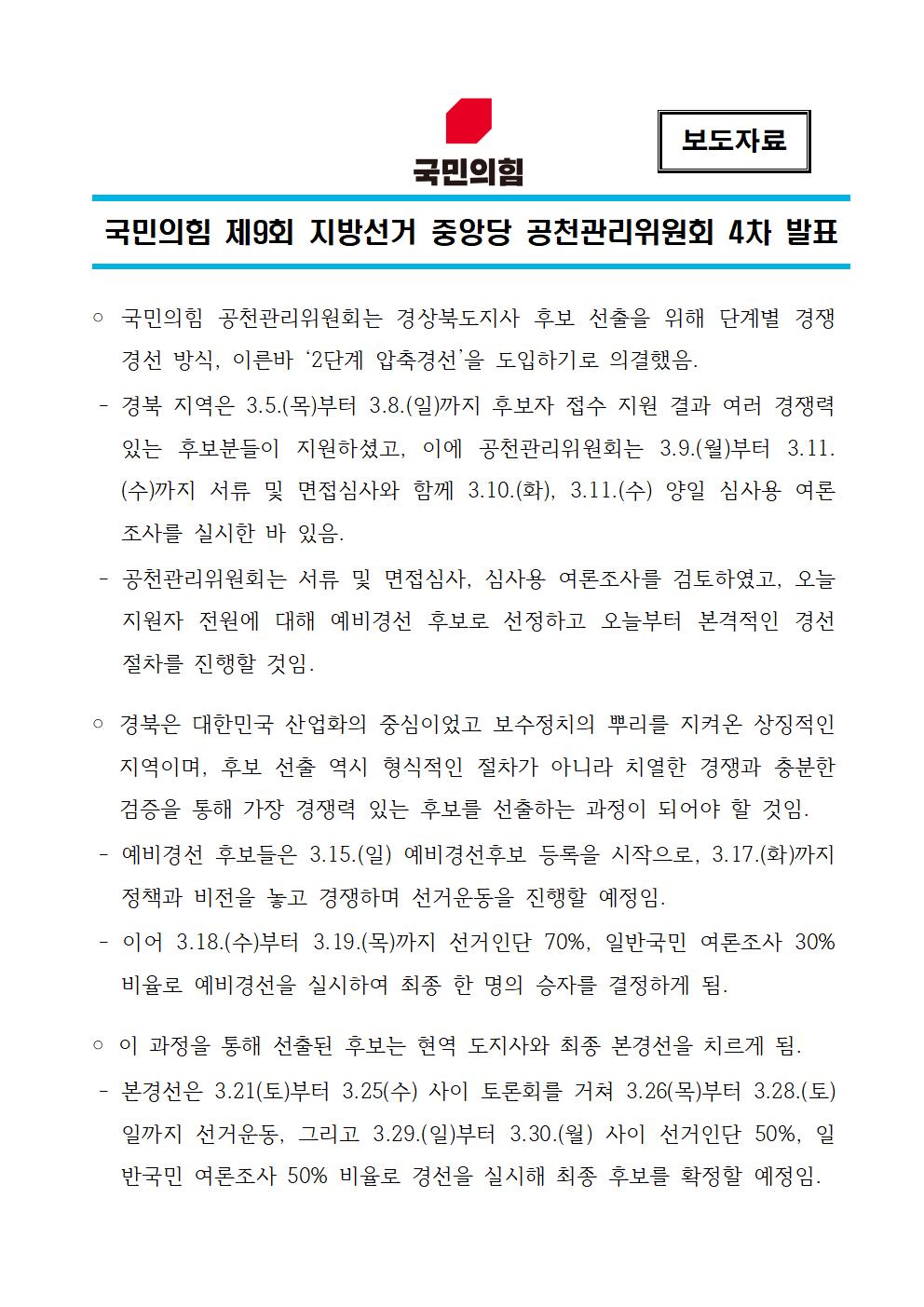 | Á¦¸ñ | ±¹¹ÎÀÇÈû Á¦9ȸ Áö¹æ¼±°Å Áß¾Ó´ç °øÃµ°ü¸®À§¿øÈ¸ 4Â÷ ¹ßÇ¥ | ||||
