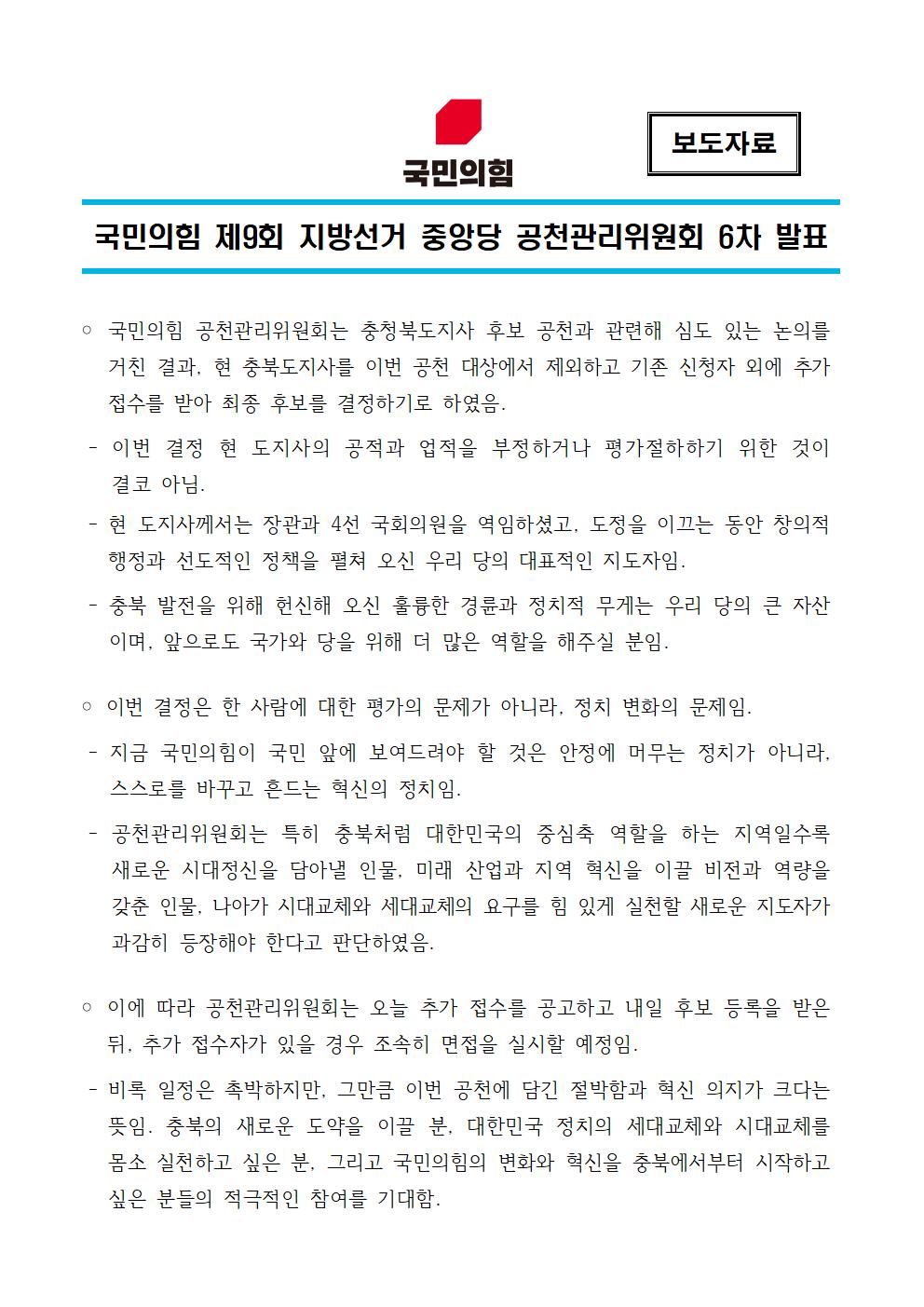 | Á¦¸ñ | ±¹¹ÎÀÇÈû Á¦9ȸ Áö¹æ¼±°Å Áß¾Ó´ç °øÃµ°ü¸®À§¿øÈ¸ 6Â÷ ¹ßÇ¥ | ||||