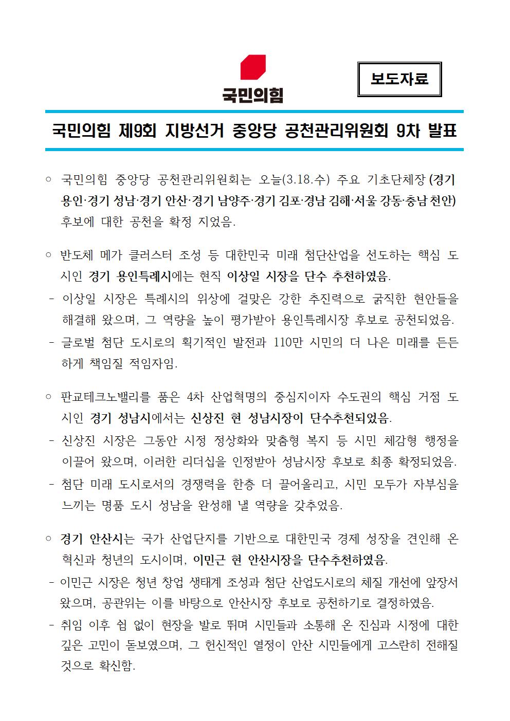 | Á¦¸ñ | ±¹¹ÎÀÇÈû Á¦9ȸ Áö¹æ¼±°Å Áß¾Ó´ç °øÃµ°ü¸®À§¿øÈ¸ 9Â÷ ¹ßÇ¥ | ||||