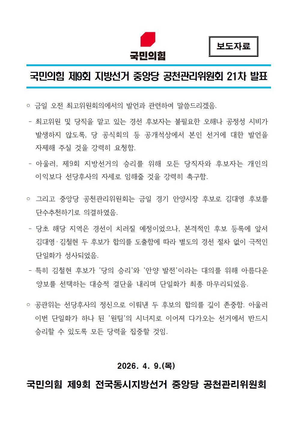 | Á¦¸ñ | ±¹¹ÎÀÇÈû Á¦9ȸ Áö¹æ¼±°Å Áß¾Ó´ç °øÃµ°ü¸®À§¿øÈ¸ 21Â÷ ¹ßÇ¥ | ||||
