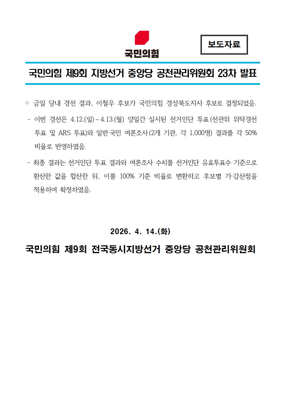 | ´ÙÀ½±Û | ±¹¹ÎÀÇÈû Á¦9ȸ Áö¹æ¼±°Å Áß¾Ó´ç °øÃµ°ü¸®À§¿øÈ¸ 24Â÷ ¹ßÇ¥ |
