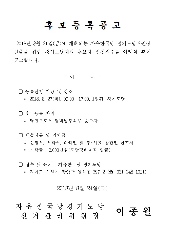 °æ±âµµ´çÀ§¿øÀå ¼±ÃâÀ» À§ÇÑ È帵î·Ï°ø°í | ||||