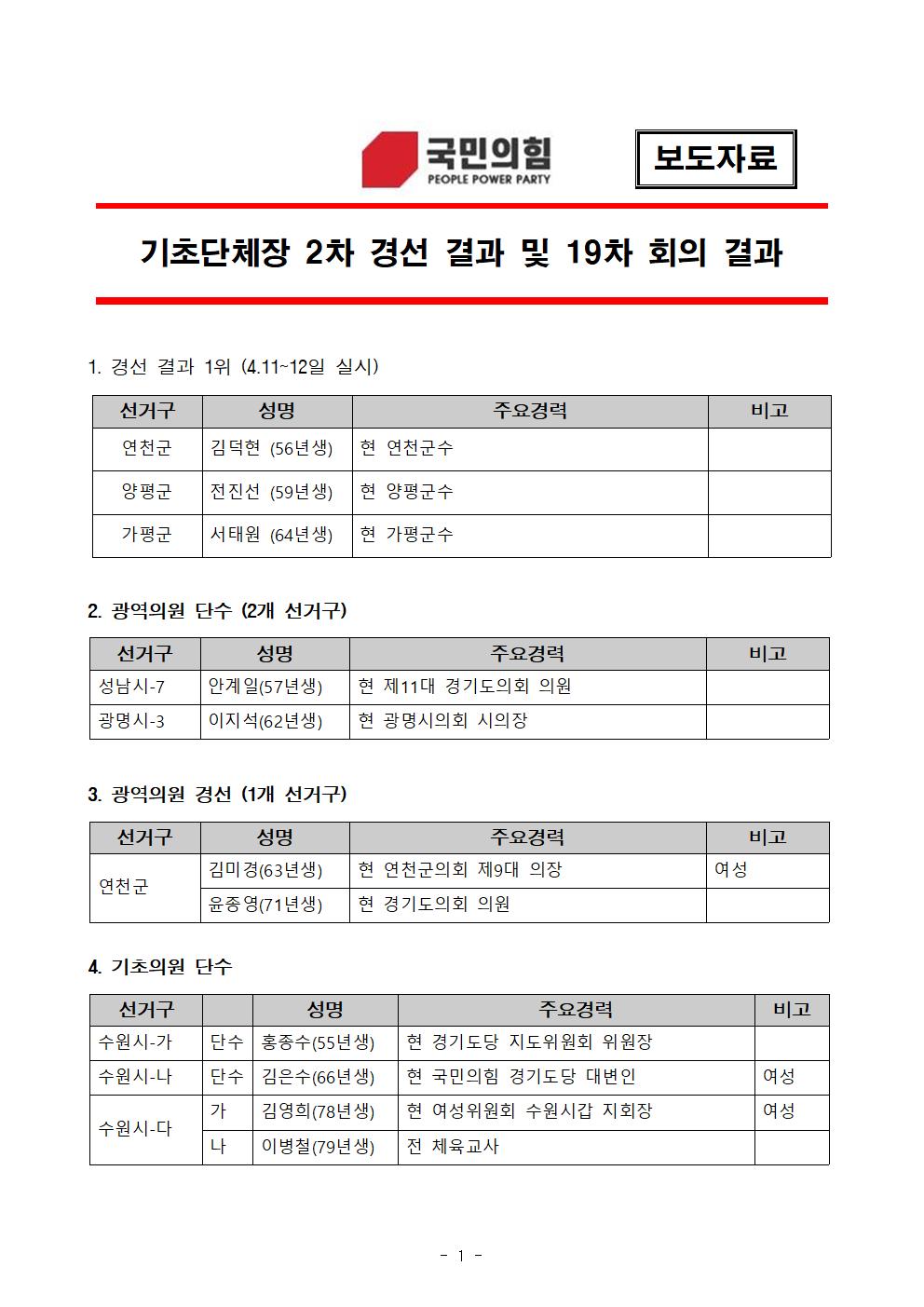 ±âÃÊ´ÜüÀå 2Â÷ °æ¼± °á°ú ¹× 19Â÷ ȸÀÇ °á°ú | ||||