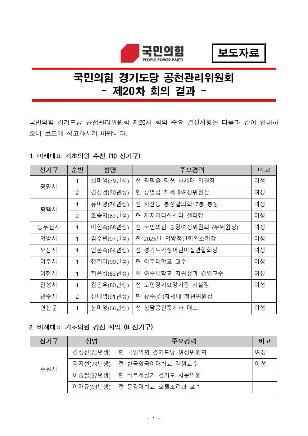 ±¹¹ÎÀÇÈû °æ±âµµ´ç °øÃµ°ü¸®À§¿øÈ¸ - Á¦20Â÷ ȸÀÇ °á°ú - | ||||