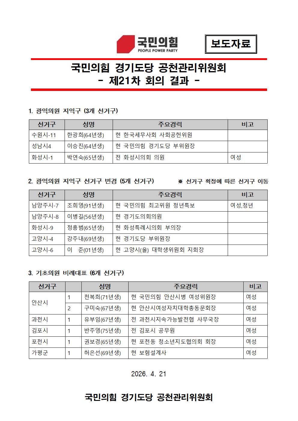 ±¹¹ÎÀÇÈû °æ±âµµ´ç °øÃµ°ü¸®À§¿øÈ¸ - Á¦21Â÷ ȸÀÇ °á°ú - | ||||