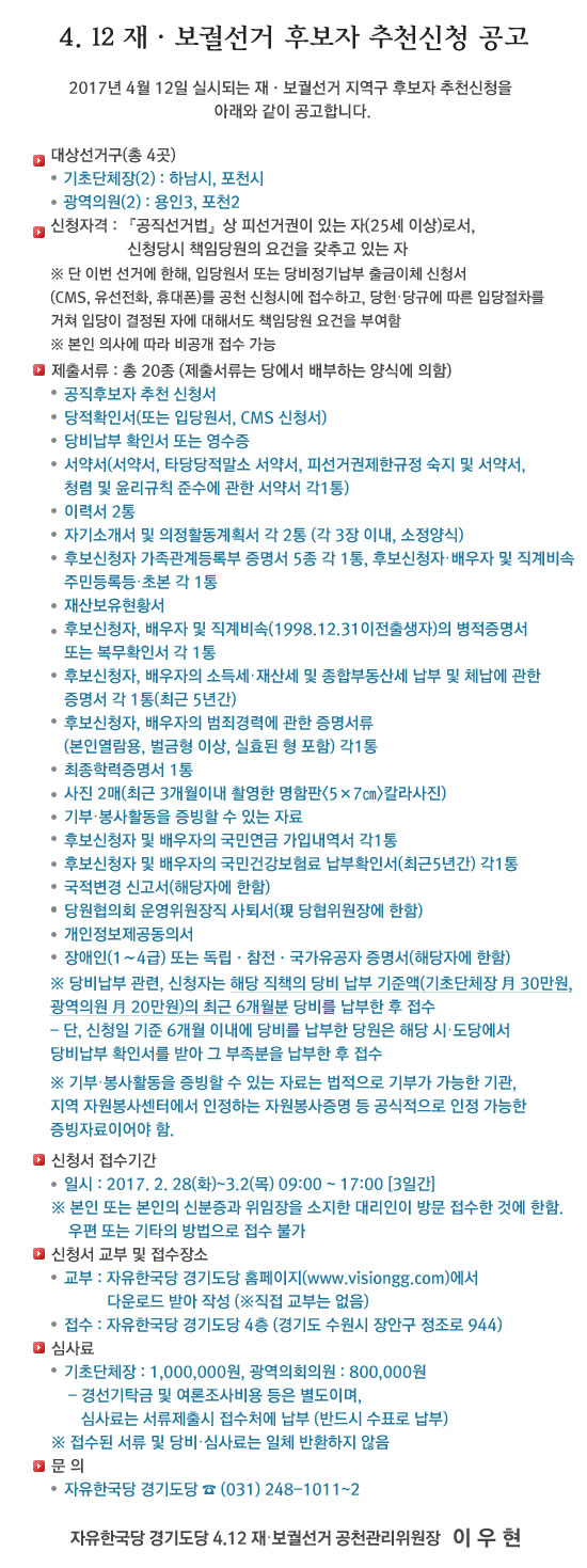 ÀÚÀ¯Çѱ¹´ç °æ±âµµ´ç 4.12 À纸±Ç¼±°Å °ø°í¹® ¹× ½Åû¼½Ä | ||||