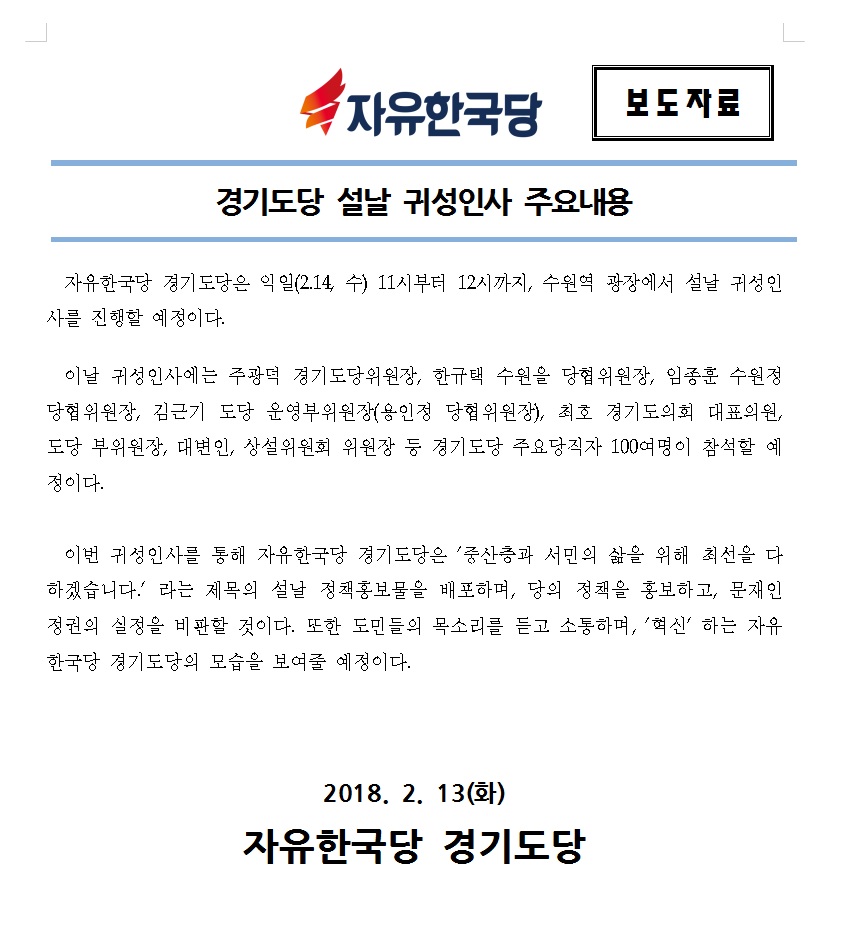 | ´ÙÀ½±Û | ÀÚÀ¯Çѱ¹´ç °æ±âµµ´ç ¼³³¯ ±Í¼ºÀλç ÁÖ¿ä³»¿ë | |