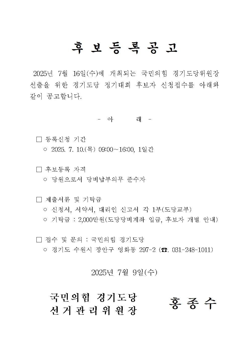 | ´ÙÀ½±Û | ±¹¹ÎÀÇÈû °æ±âµµ´ç, Á¦1Â÷ ¼±°Å°ü¸®À§¿øÈ¸ °³ÃÖ - 2025³â °æ±âµµ´çÀ§¿øÀå ¼±Ãâ ÀýÂ÷ ... | |