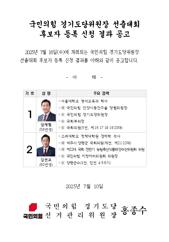 ±¹¹ÎÀÇÈû °æ±âµµ´çÀ§¿øÀå ¼±Ãâ´ëȸ Èĺ¸ÀÚ µî·Ï ½Åû °á°ú °ø°í.png | ||||