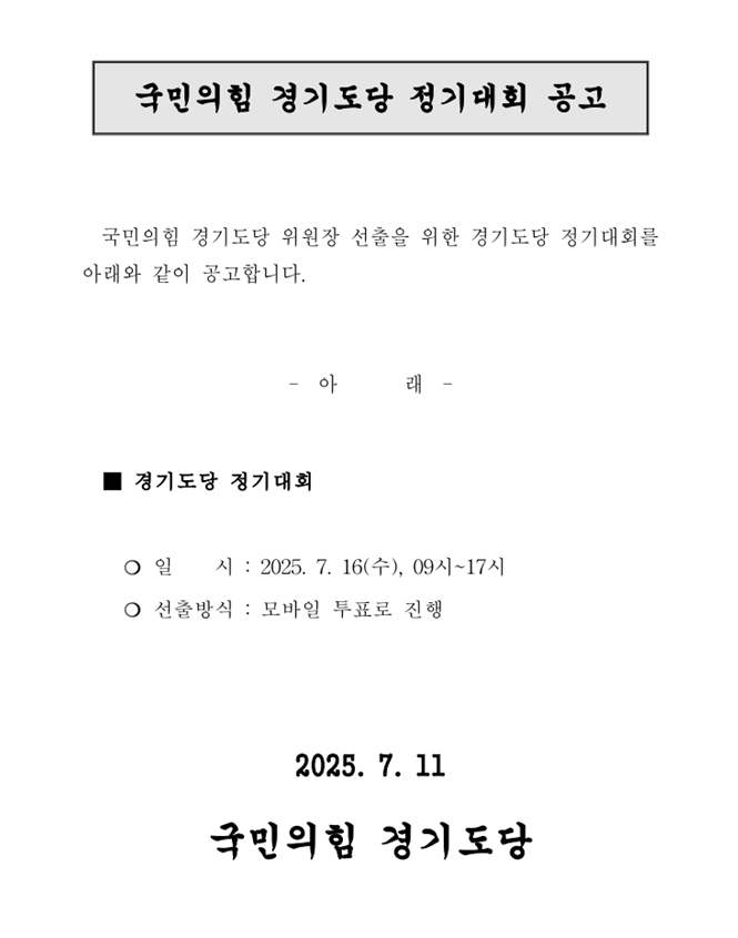 ±¹¹ÎÀÇÈû °æ±âµµ´ç Á¤±â´ëȸ °ø°í | ||||