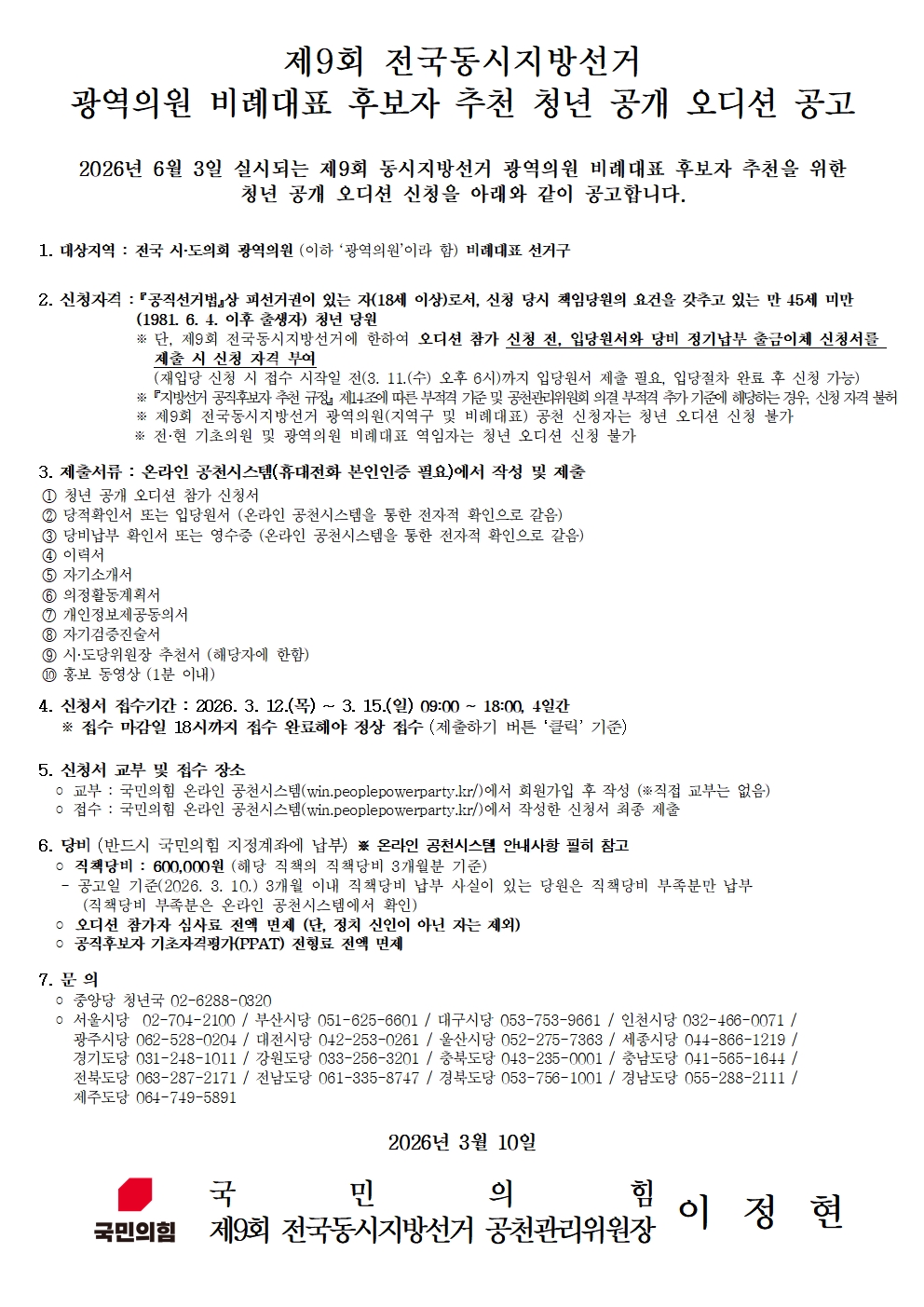 Á¦9ȸ Àü±¹µ¿½ÃÁö¹æ¼±°Å ±¤¿ªÀÇ¿ø ºñ·Ê´ëÇ¥ Èĺ¸ÀÚ Ãßõ û³â°ø°³ ¿Àµð¼Ç °ø°í | ||||