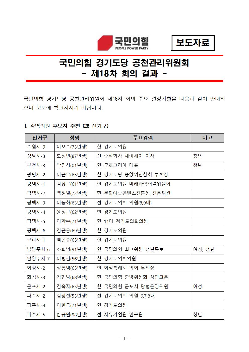 ±¹¹ÎÀÇÈû °æ±âµµ´ç °øÃµ°ü¸®À§¿øÈ¸ - Á¦18Â÷ ȸÀÇ °á°ú - | ||||