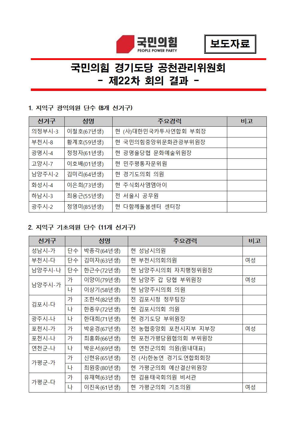 ±¹¹ÎÀÇÈû °æ±âµµ´ç °øÃµ°ü¸®À§¿øÈ¸ - Á¦22Â÷ ȸÀÇ °á°ú - | ||||
